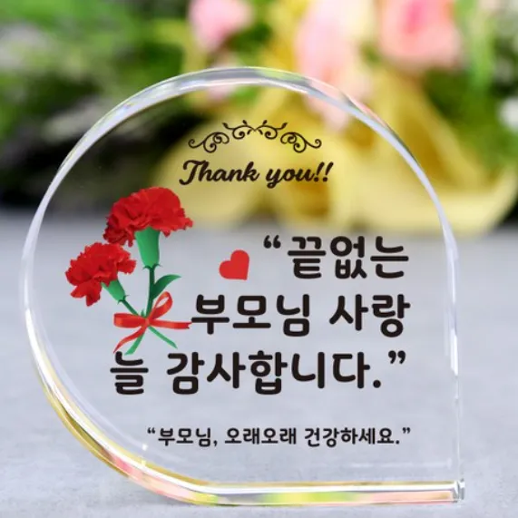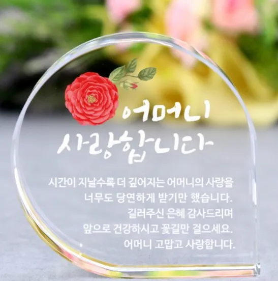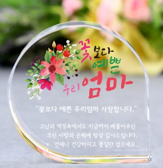 엄마에게 감동을 선사하고 싶다면 감사패를 추천합니다. "꽃보다 예쁜 우리 엄마"라는 문구를 새긴 감사패는 진심을 전할 수 있는 선물입니다. 손편지와 함께 드리면 감동이 배가 됩니다. 벽에 걸거나 선반에 올려둘 수 있어 추억을 오래 간직할 수 있습니다.