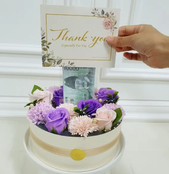 평범한 용돈 선물에 색다른 재미를 더하고 싶다면 용돈 케이크를 고려해 보세요. 케이크 형태로 만든 상자 안에서 카드를 뽑을 때 용돈이 줄줄이 딸려 나옵니다. 부모님께서 즐겁게 선물을 열어보며 깜짝 놀라는 모습은 보너스입니다. 이벤트성 선물로도 훌륭한 선택입니다.