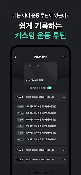 3) 기존 워크아웃 기록 앱과 달리 무제한 편집이 가능하며, 개인 맞춤 루틴을 손쉽게 생성할 수 있습니다.