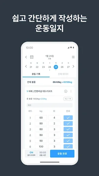 기록과 데이터 분석을 통해 운동 효과를 극대화할 수 있습니다. 체계적으로 운동을 관리하면서도 개인화된 루틴을 쉽게 생성할 수 있어 초보자부터 전문가까지 모두에게 유용합니다.