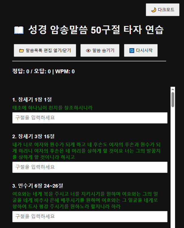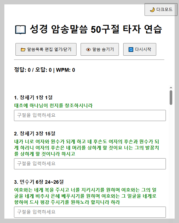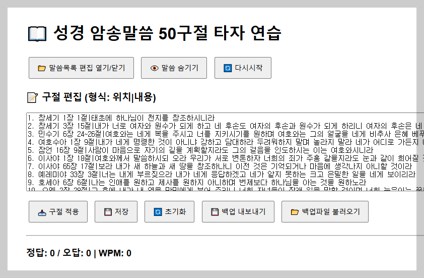 #성경 #암송 #50 #구절 #타자연습 #말씀 #웹프로그램