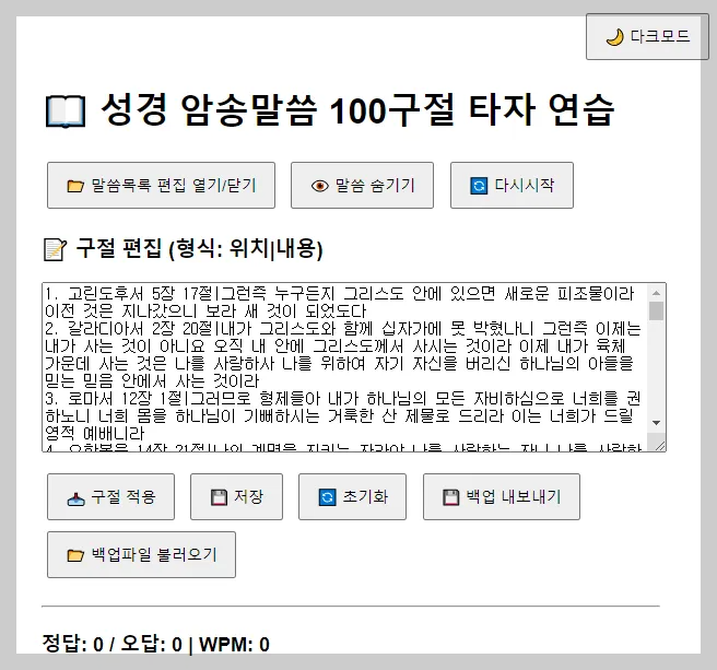 2.성경 암송 말씀 100 구절 타자연습 웹프로그램 사용방법