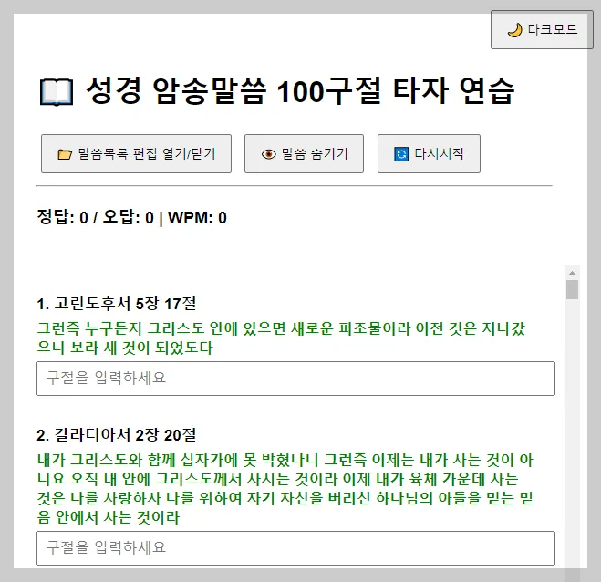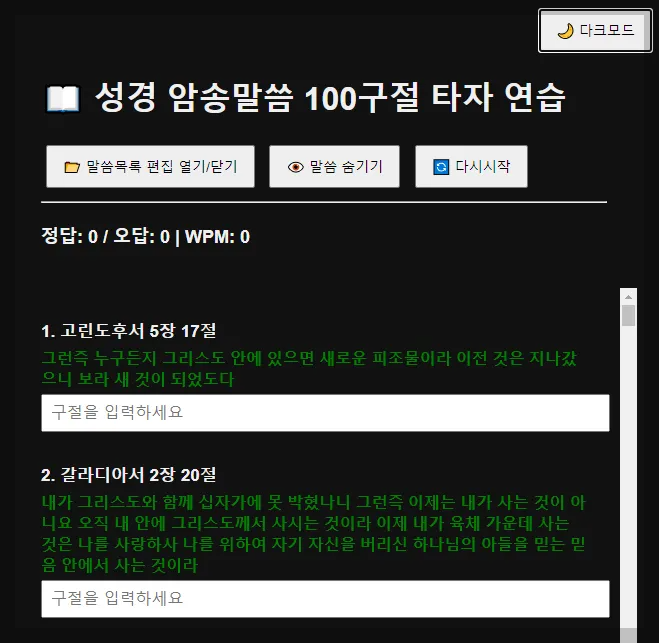 1. 성경 암송 말씀 100 구절 타자연습 웹프로그램 링크