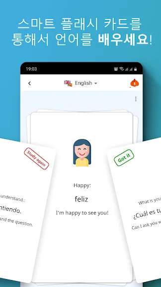 ✔ 간격 반복: 잊어버리려는 카드에 집중하여 공부하면 카드를 정말 기억하게 됩니다.