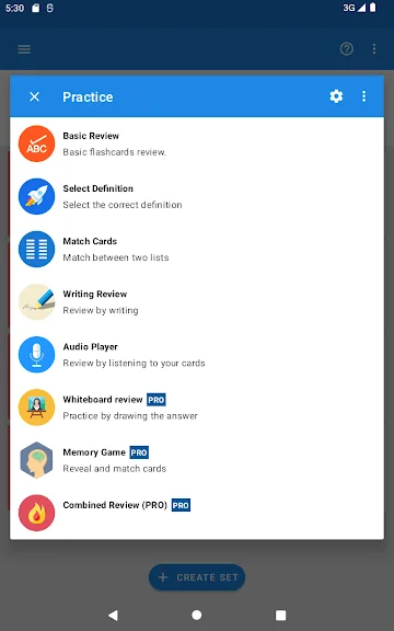 학습 모드: 다양한 복습 모드를 사용하여 공부하는 동안 계속 집중할 수 있습니다. 여기에는 복습 작성, 복수 답변, 오디오 플레이어 및 좋은 오래된 플래시 카드 복습이 포함됩니다.