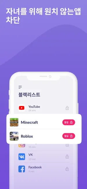 • 자녀의 장치에 설치된 게임 및 응용프로그램을 차단함 (앱 잠금, 어플차단, 앱 차단)