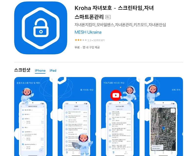 2. 아이폰 Kroha 자녀보호-스크린타임,자녀 스마트폰관리 앱