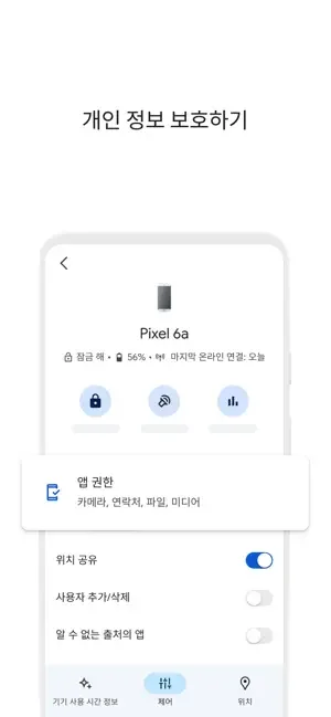 스크린 타임 - 자녀가 핸드폰을 얼마나 사용하는지 확인하고, 가장 자주 사용하는 앱은 무엇인지 알아보세요. 키즈 컨트롤 기능도 사용할 수 있습니다.
