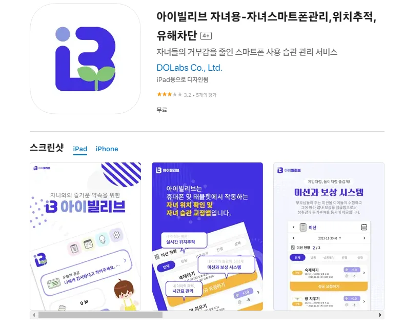 아래는 아이폰 아이빌리브 자녀용-자녀스마트폰관리,위치추적,유해차단 어플에 대한 자세한 설명입니다. 참고하세요.