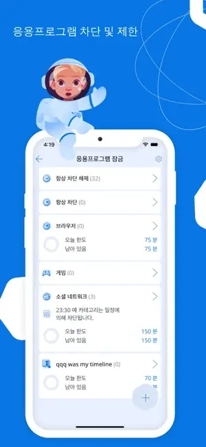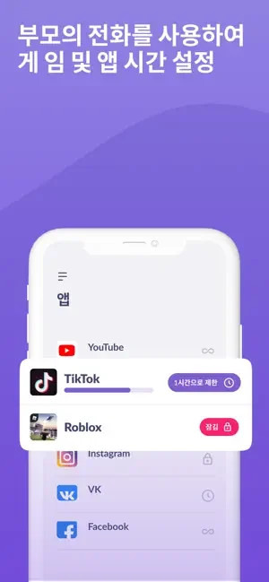 • 자녀의 휴대폰에서 응용프로그램 및 게임의 사용을 제한함 (시간제한어플, 스크린 시간, 시간 확인, 화면 시간)
