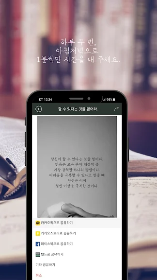 어느덧 나만의 명언집이 완성되어 언제든 다시보고 카톡이나 문자로 친구와 공유할 수 있습니다.
