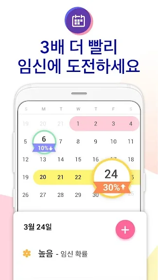 • 배란일달력으로 배란 예측기로 임신 확률 높은 배란일 및 가임기(임신 가능일) 추적