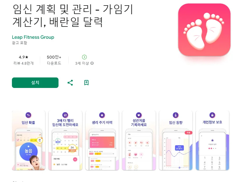 이 어플은 구글플레이스토어에서 "가임기 계산"로 검색했을때 4번째로 나오는 어플입니다. 아래는 임신 계획 및 관리 - 가임기 계산기, 배란일 달력 어플에 대한 자세한 설명이니 참고하세요.