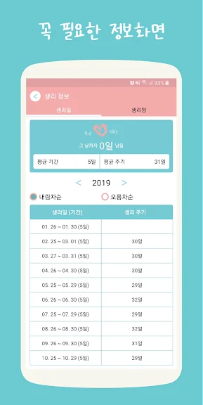 2) 여성생리달력 - 생리 및 가임기간 임신 배란 어플 스크린샷