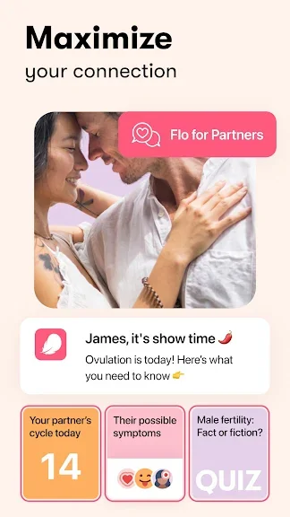 Flo의 새로운 기능: 파트너를 위한 Flo! Flo 계정을 파트너와 연결하여 주기 또는 임신 상황을 공유하세요. 회원님과 파트너 모두의 만족도를 높일 수 있습니다!