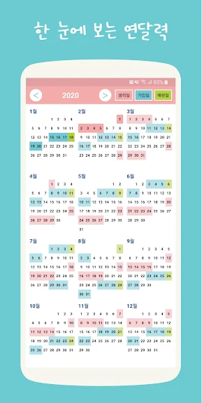 짠! 여기 여성을 위한 여성생리달력 - 생리 및 가임기간 임신 배란 (Period Calendar)이 준비되어 있습니다~