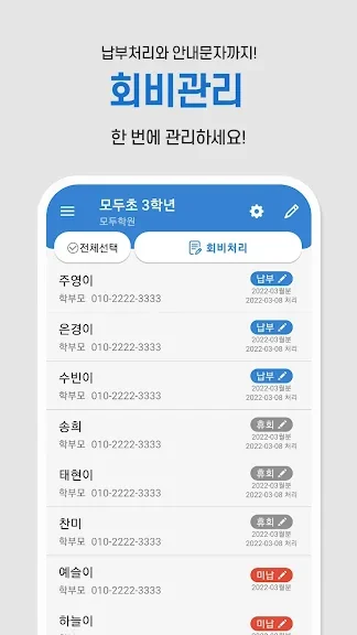 - 연락처 편집 권한을 설정하시면 선생님 핸드폰으로도 연락처 편집이 가능합니다.