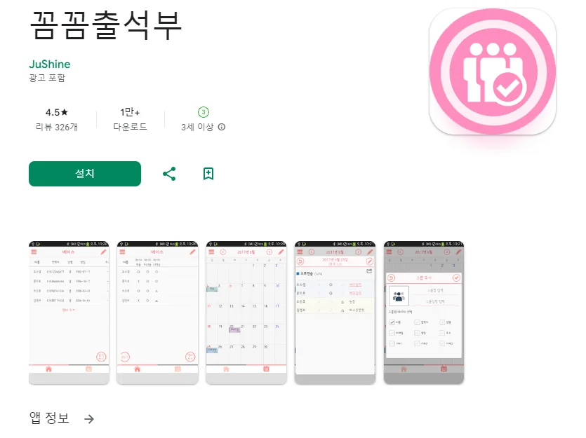 아래는 꼼꼼출석부 어플에 대한 스크린샷 정보입니다.
