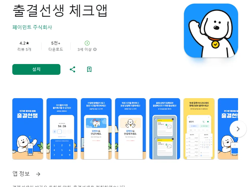 아래는 출결선생 체크앱 어플에 대한 스크린샷 정보입니다.