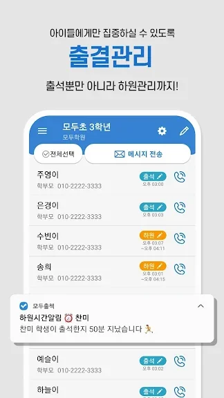 [출결상태가 등록되면 출결메시지가 자동발송됩니다.]