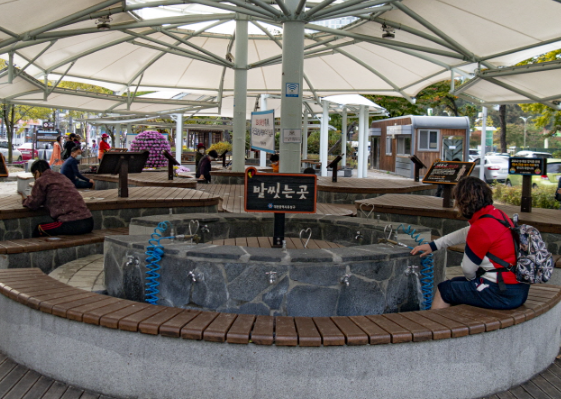 조선 시대 태조와 태종이 이곳에서 목욕했다는 기록이 있는 유서 깊은 온천입니다. 라듐이 함유된 약알칼리성 단순천으로, 수질이 부드러워 목욕 후에는 비눗물이 씻기지 않은 것처럼 매끄러운 느낌을 줍니다. 이 온천은 피부병, 신경 질환, 위장병, 부인병 등에 효과가 있다고 알려져 있습니다. 온천단지 내 숙박시설과 대중탕에서 온천욕을 즐길 수 있으며, 최근에는 온천테마공원이 조성되어 지역민과 여행객들이 많이 찾고 있습니다. 지하 200m에서 끌어올린 온천수로 족욕을 즐길 수 있는 족욕 체험장은 항상 사람들로 붐빕니다.