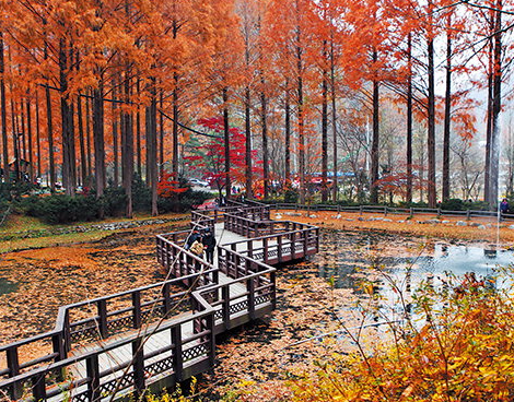 대전시 동쪽에 위치한 해발 492m의 계족산에는 계족산성과 장동산림욕장이 있습니다. 한때 지역 주민들의 뒷산에 불과했던 계족산은 황톳길이 생기면서 전국적으로 유명한 맨발 걷기의 명소로 거듭났습니다. 장동산림욕장 입구에서 시작되는 황톳길은 총 14.5km 길이의 원점 회귀 코스로, 모두 걷는 데 약 5~6시간이 소요됩니다. 맨발 걷기는 혈액순환 개선과 불면증 해소 등 건강에 좋다고 알려져 있습니다. 울창한 숲길을 따라 맨발로 황톳길을 걸어보세요. 힘든 여정이지만, 발이 편안해지고 황토의 감촉이 건강해지는 느낌을 선사할 것입니다.
