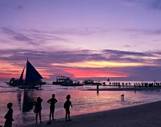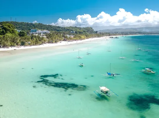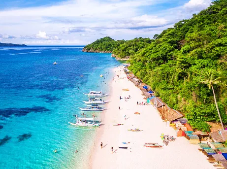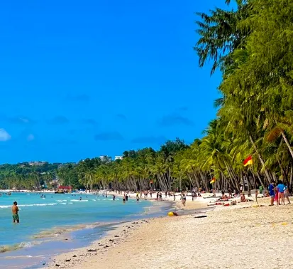 - 화이트 비치 (White Beach): 보라카이에서 가장 유명한 해변 중 하나로, 눈부신 흰 모래와 아름다운 해변이 특징입니다. 해변가에는 다양한 레스토랑, 카페, 상점들이 있어 휴양과 쇼핑을 즐길 수 있습니다.