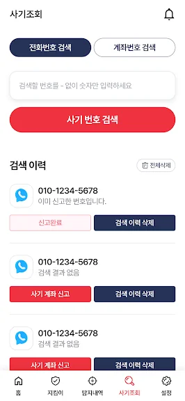 ▶ 전화번호 및 계좌번호 검색으로 의심스러운 번호를 식별해 금융사기로부터 보호해드립니다.