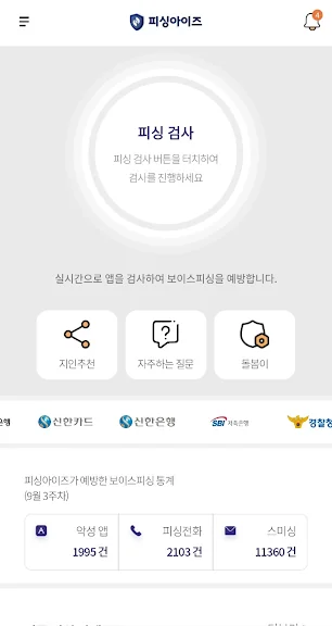 보이스피싱 및 해킹의 위험이 있는 악성 앱이 설치 및 탐지될 시 알림을 제공하며 제휴된 금융사에서 보이스피싱을 차단하도록 합니다.