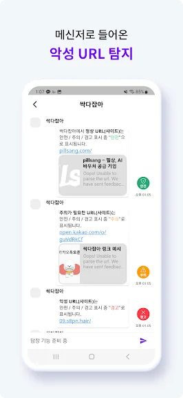 보이스피싱으로 신고된 전화번호는 범죄자들이 바꾸면 그만입니다. 요즘은 URL 링크 클릭을 유도해서 악성앱을 설치하는 공격이 주를 이룹니다. "싹다잡아"는 악성 URL로부터 여러분들을 보호해드립니다.