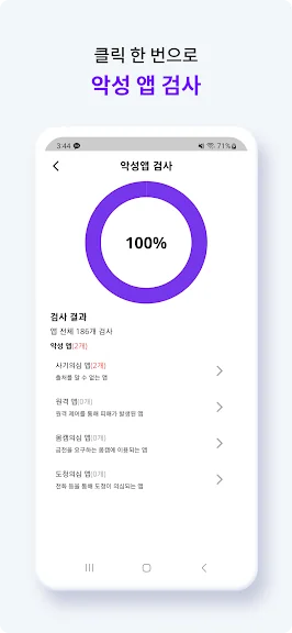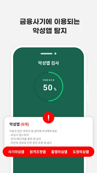 "내 휴대폰에 설치된 불법 악성 앱, 탐지/경고 기능으로 피해 예방하세요."