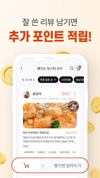 리뷰 검색 기능은 인스타그램처럼 고품질의 리뷰를 쉽게 탐색할 수 있게 해주며, 이 리뷰를 통해 주문하면 추가 리워드도 받을 수 있습니다.