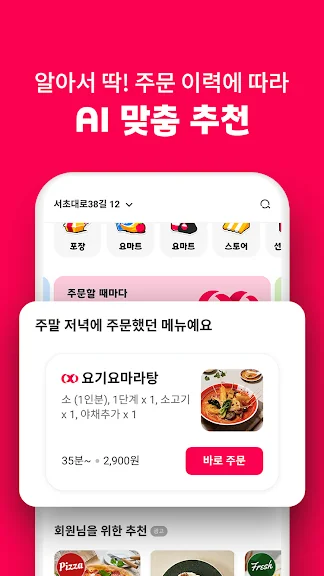 또한, AI 개인화 추천 기능을 활용하면 사용자의 주문 이력에 기반하여 맞춤 가게와 메뉴를 추천받을 수 있어 더욱 편리합니다. 신선한 식품과 생필품을 주문할 수 있는 요마트 서비스는 필요한 순간에 맞춰 신속하게 배달되므로 바쁜 일상 속에서 유용하게 사용할 수 있습니다.