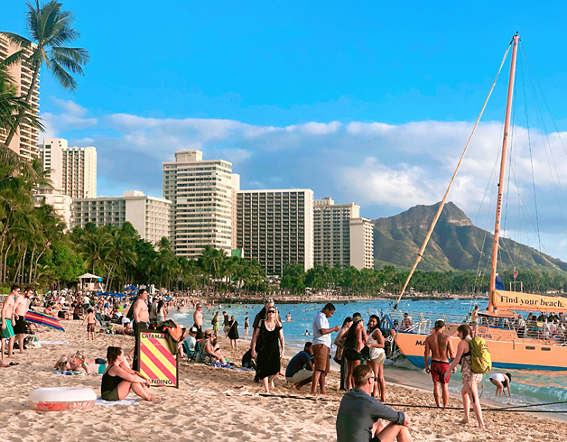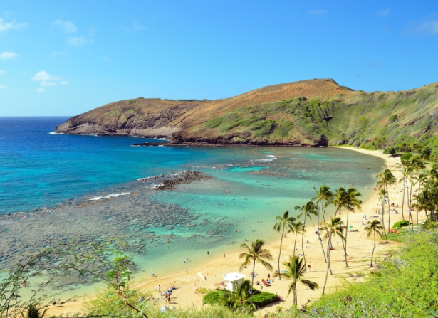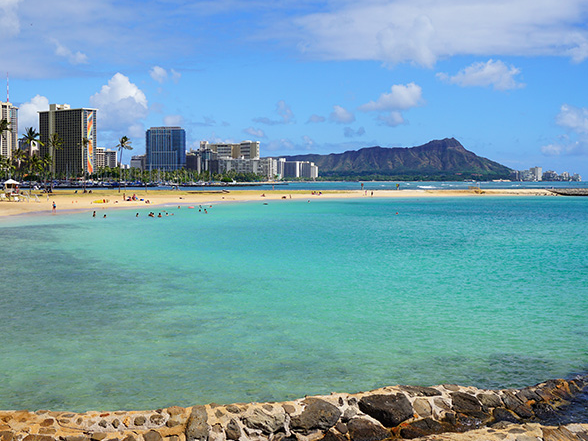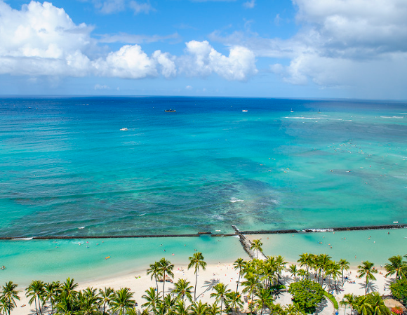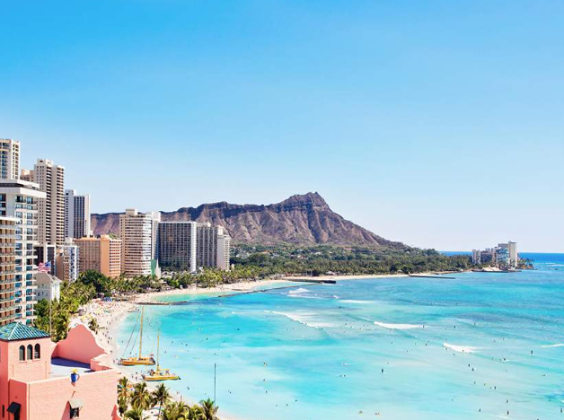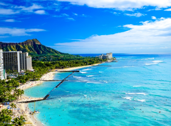4) 오아후: 와이키키 해변과 도시 문화의 중심지.